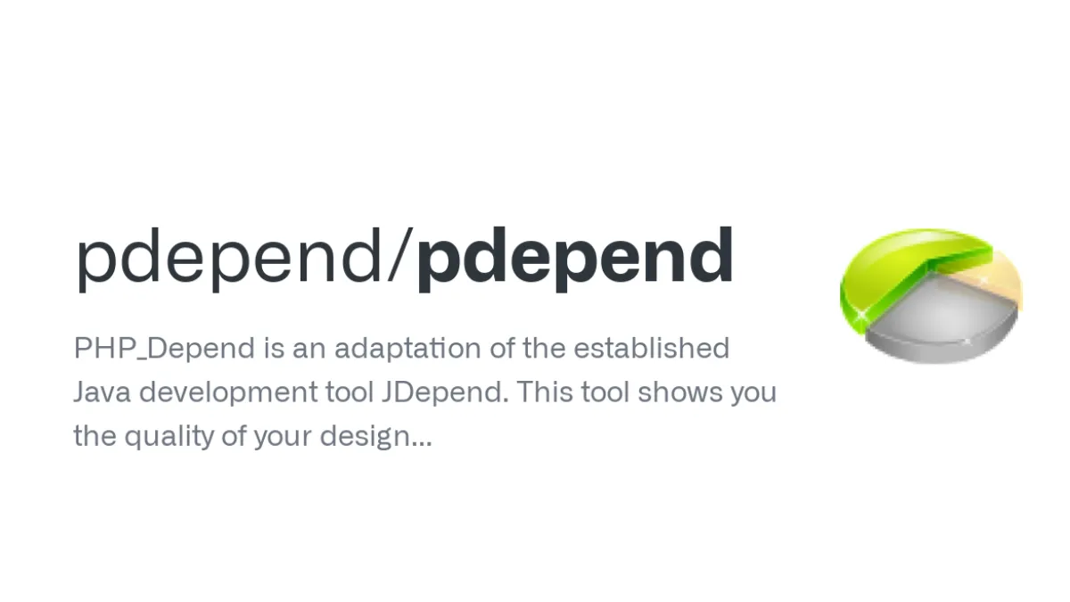 Logo von PHP Depend, einem Tool zur Analyse der Codequalität in PHP-Projekten. Links steht der Projektname, rechts eine stilisierte Kreisdiagrammgrafik in grün und grau.