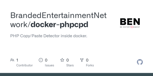 GitHub-Repository BrandedEntertainmentNetwork/docker-phpcpd mit einem einfachen Docker-Wrapper für PHPCPD. Projekt mit einem Contributor und keiner Community-Aktivität (0 Sterne, 0 Forks).